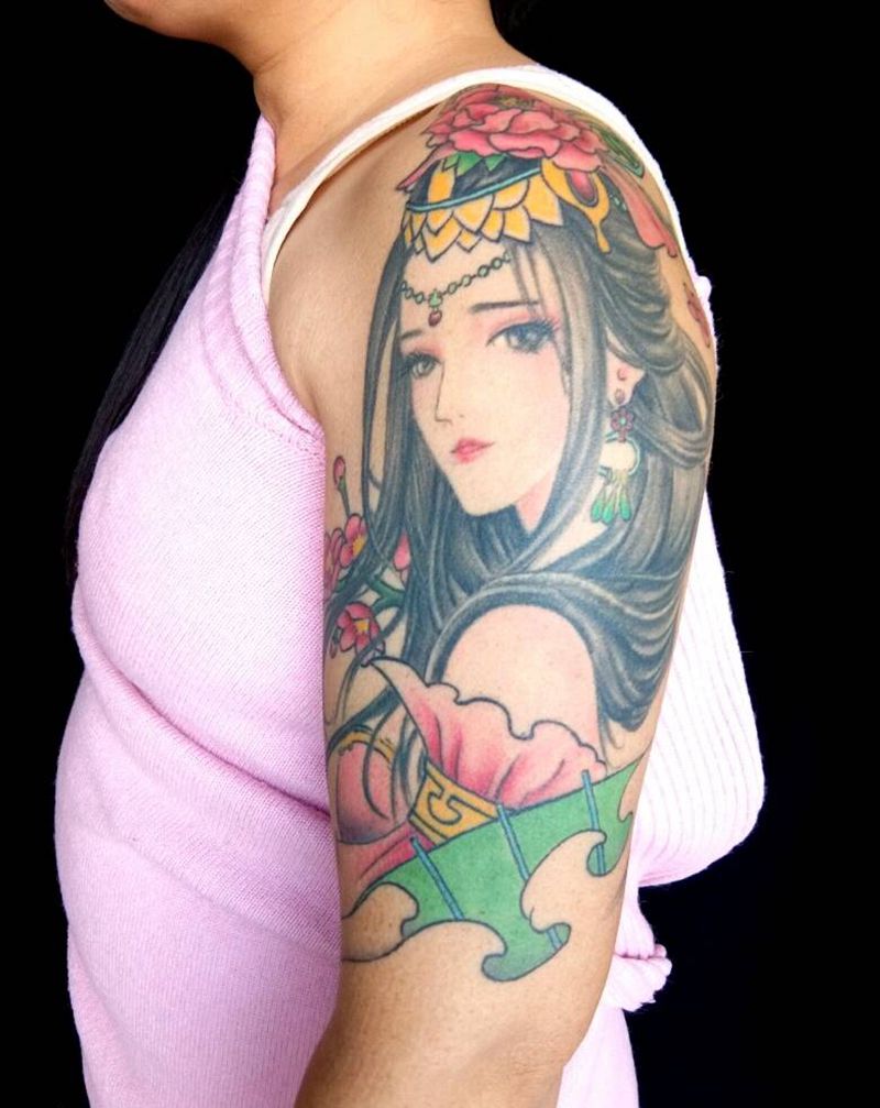 当前位置: 首页 >山东省德州市纹身店-君刺青纹身图案>美女纹身图片_肩部肖像人物成品纹身图案