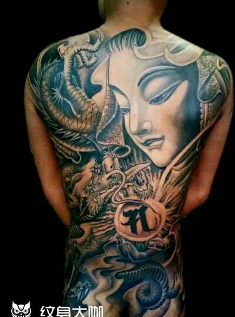 黑灰满背纹身图案