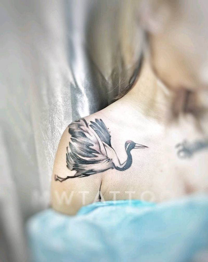 仙鹤纹身图片_胸部肩部新传统纹身图案