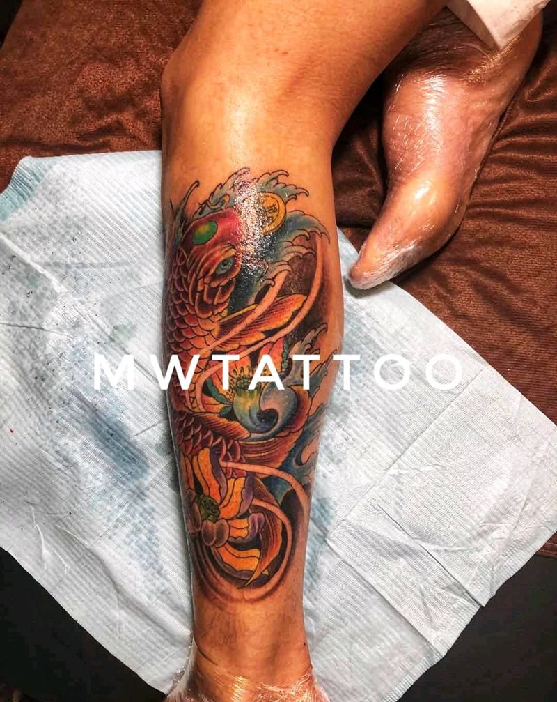当前位置: 首页 >山东省菏泽市纹身店-菏泽墨舞刺青工作室纹身图案>鲫鱼纹身图片_腿部新传统纹身图案