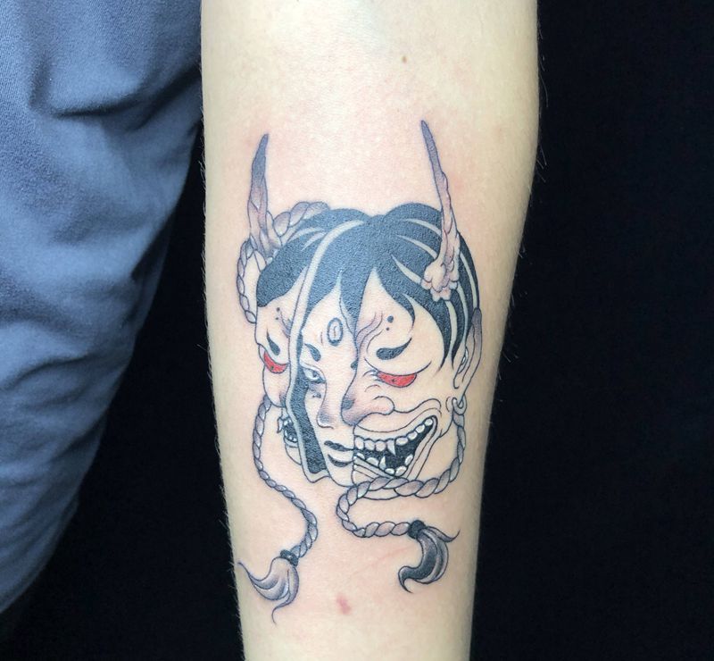 客带图班诺面具纹身图片_手臂新传统纹身图案