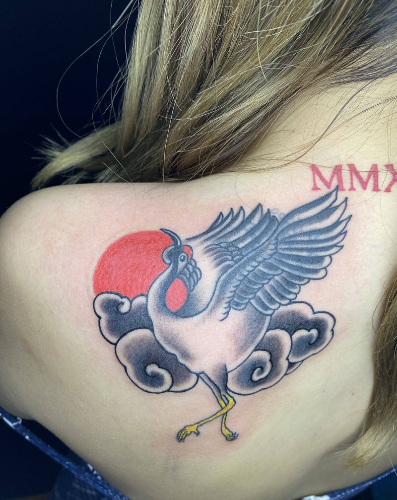 当前位置: 首页 >山东省德州市纹身店-德州小伟刺青纹身图案>仙鹤纹身图片_肩部老传统纹身图案