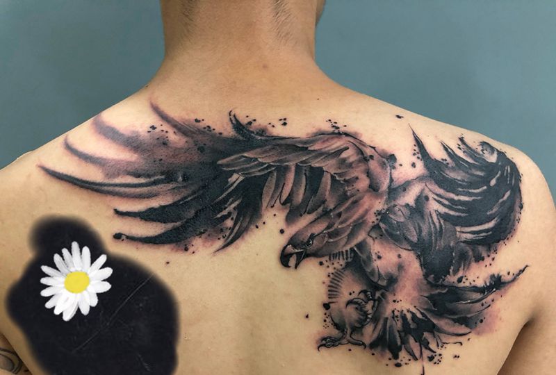当前位置: 首页 >山东省德州市纹身店-德州小伟刺青纹身图案>泼墨风格老鹰纹身图片_肩部水墨纹身图案