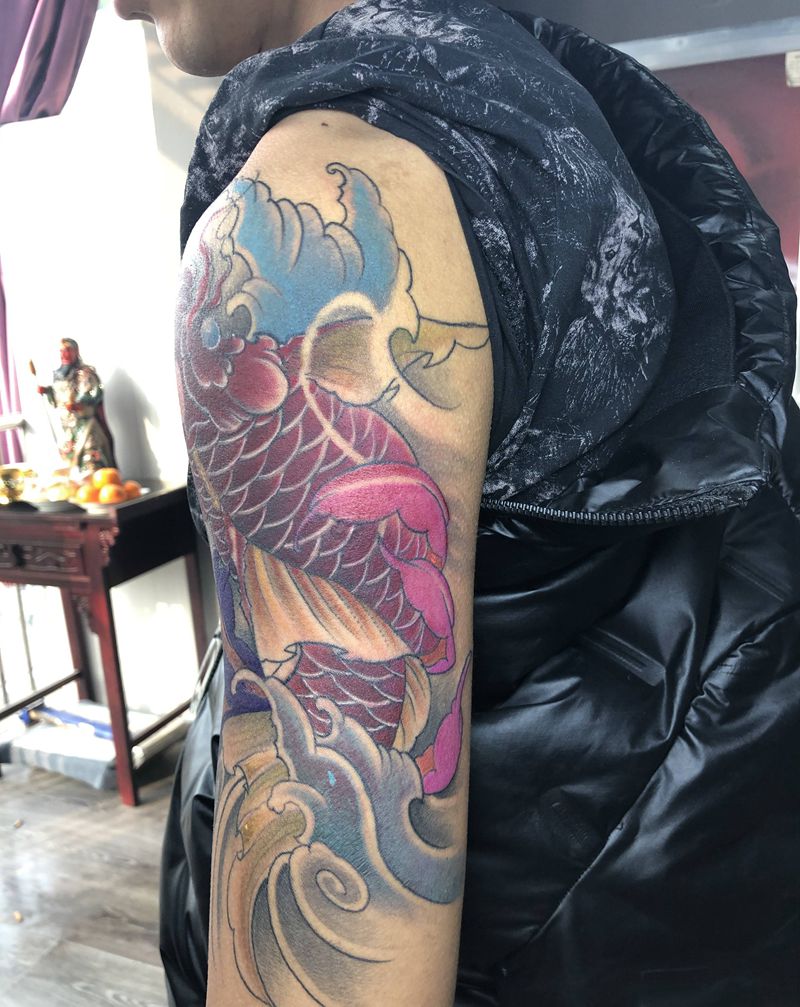 当前位置: 首页 >山东省德州市纹身店-德州小伟刺青纹身图案>鱼纹身图片_手臂新传统纹身图案
