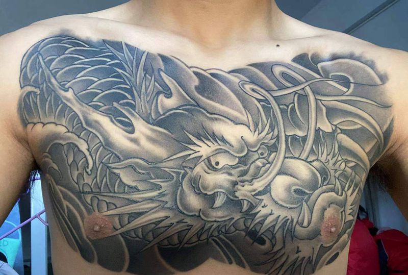 黑灰满背纹身图案