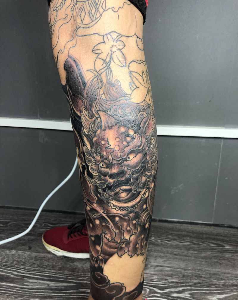 当前位置: 首页 >山东省德州市纹身店-德州小伟刺青纹身图案>唐狮纹身图片_腿部新传统纹身图案