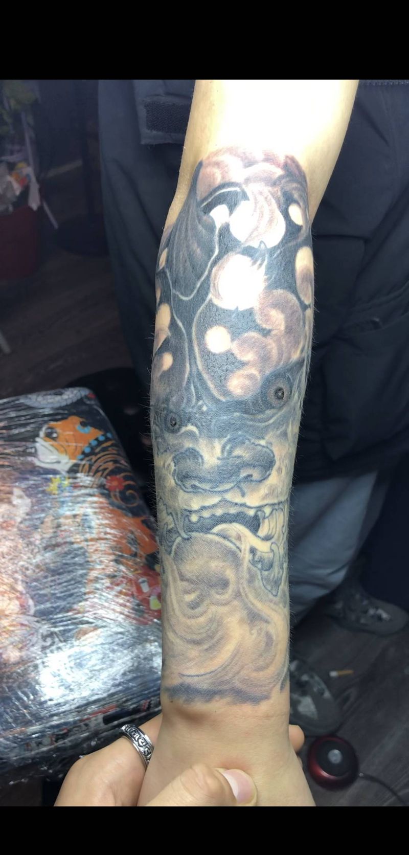 当前位置: 首页 >山东省德州市纹身店-德州小伟刺青纹身图案>唐狮子纹身图片_手臂新传统纹身图案
