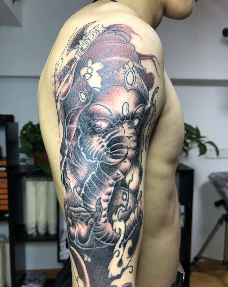 当前位置: 首页 >山东省德州市纹身店-德州小伟刺青纹身图案>象神未完成,细节未做纹身图片_手臂新传统纹身图案