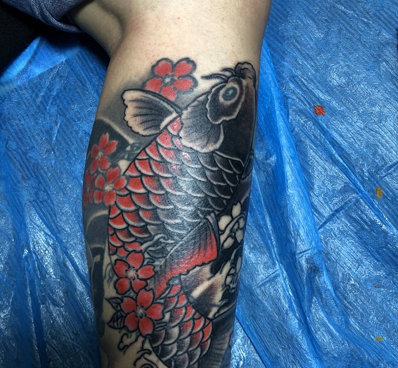 • T网红王老大花腿龙纹身图片_腿部新传统纹身图案