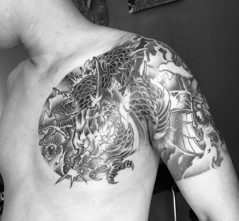 • 纹身吧推荐的披肩图腾半胛纹身图案作品展示