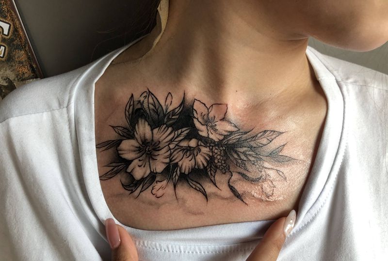 • 女性大花胸纹身_43张霸气漂亮的女性大花胸纹身图案作品