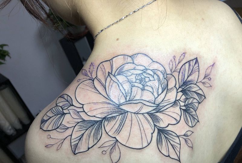 素花纹身图片_肩部新传统纹身图案