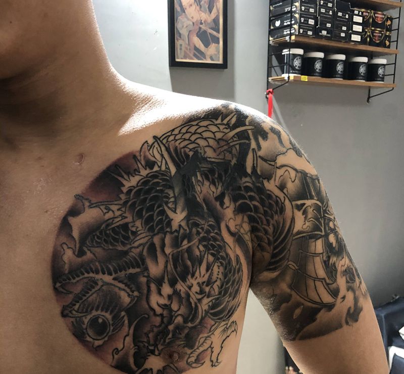 新传统遮盖纹身图片_胸部新传统纹身图案