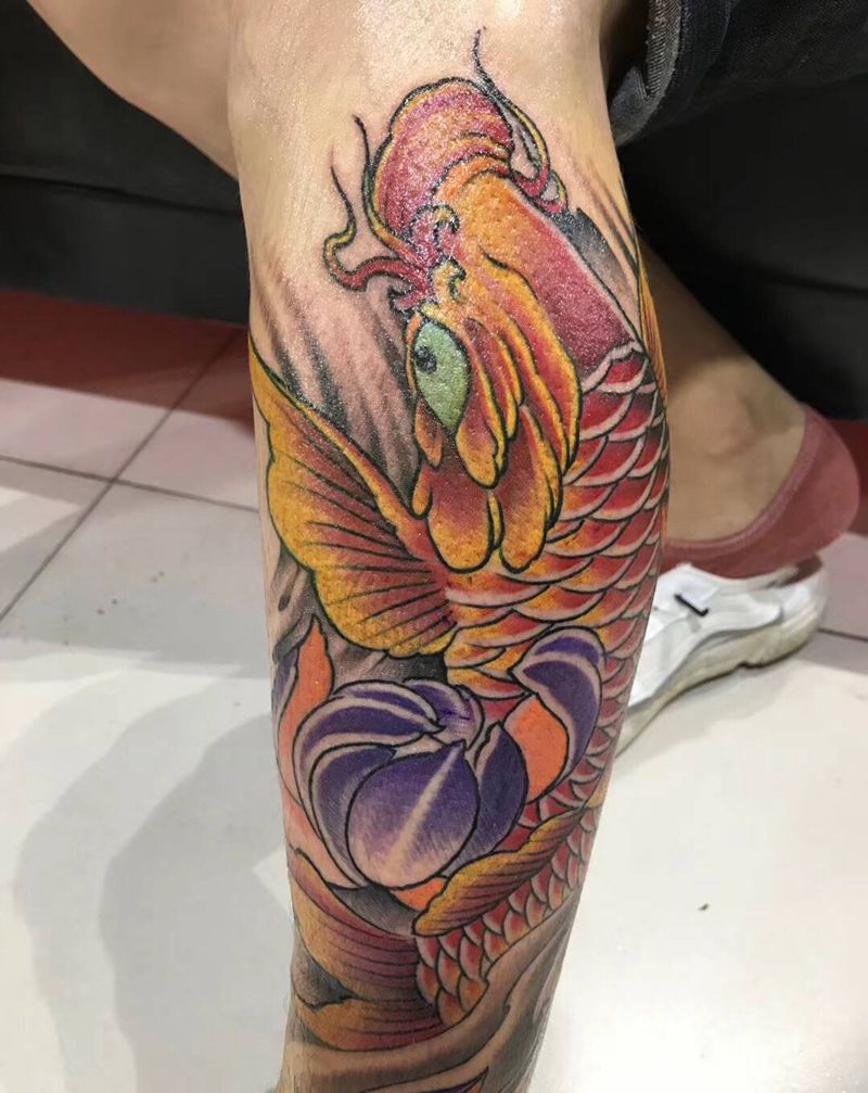• T网红王老大花腿龙纹身图片_腿部新传统纹身图案