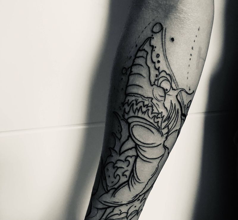 去年作品 补发纹身图片_手臂新传统New School纹身图案