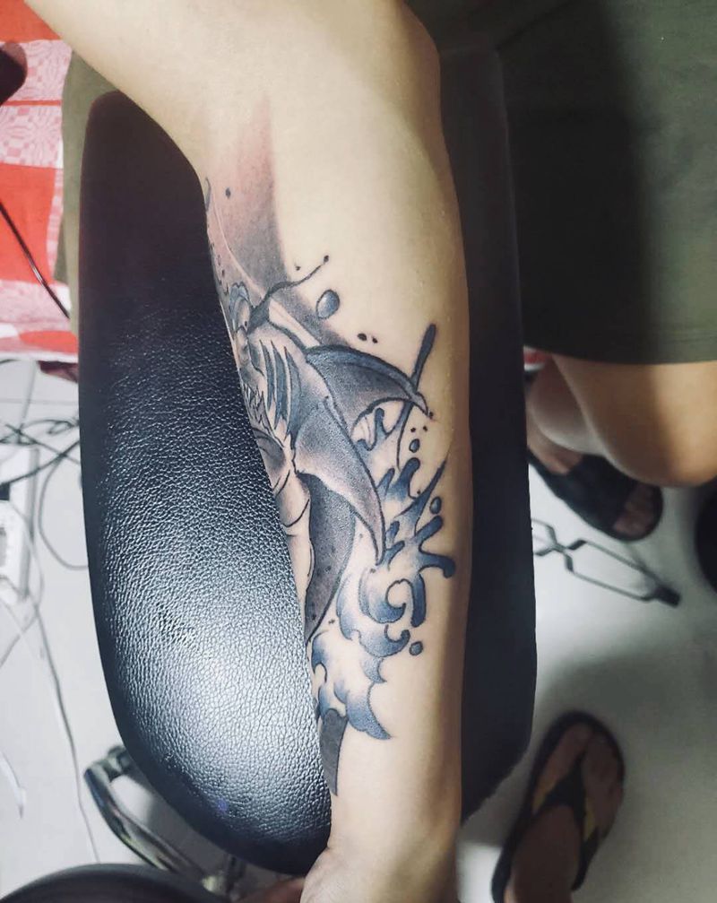 当前位置: 首页 >山东省聊城市纹身店-D•刺青纹身图案>小鲨鱼纹身图片_手臂New School纹身图案