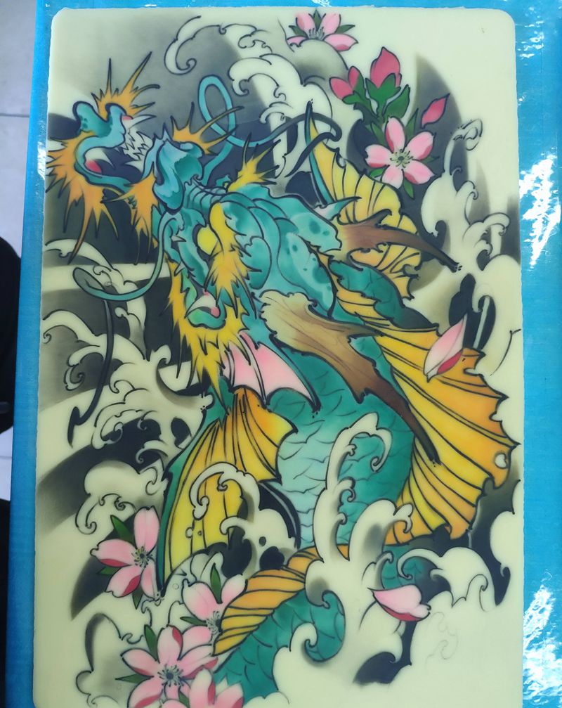 • T网红王老大花腿龙纹身图片_腿部新传统纹身图案