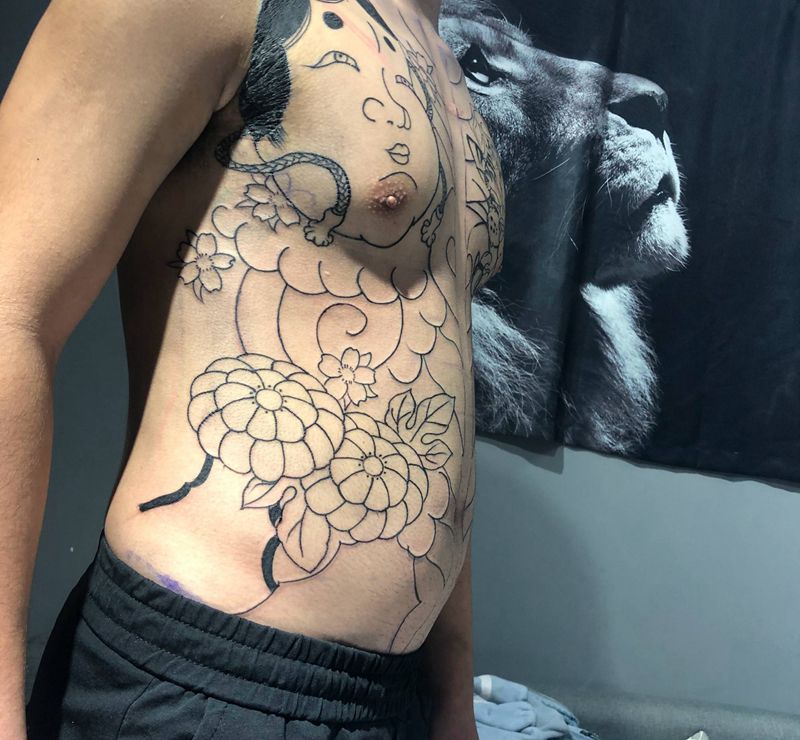 • 女性大花胸纹身_43张霸气漂亮的女性大花胸纹身图案作品