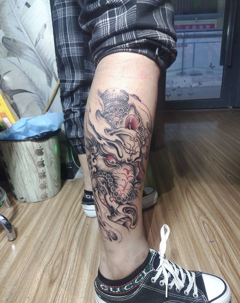 当前位置: 首页 >山东省德州市纹身店-针艺舍刺青工作室纹身图案>象神纹身图片_腿部新传统纹身图案