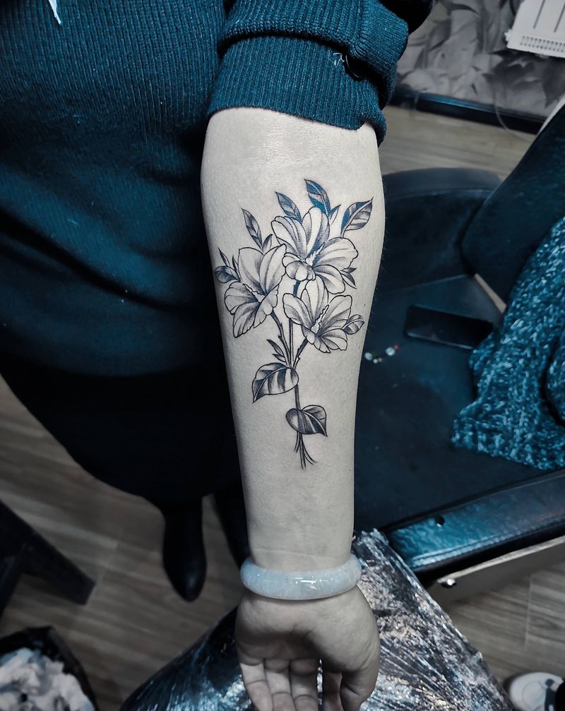 素花遮盖伤疤纹身图片_手臂新传统纹身图案
