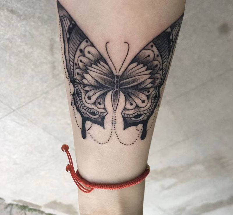 当前位置: 首页 >山东省德州市纹身店-针艺舍刺青工作室纹身图案>蝴蝶纹身图片_手臂点刺纹身图案