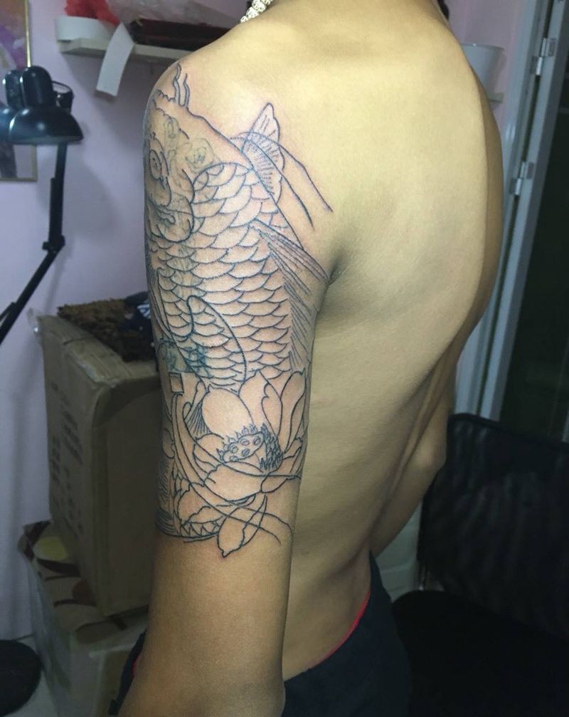 当前位置: 首页 >山东省滨州市纹身店-滨州惠民一铭纹身纹身图案>鲤鱼遮盖进行…文静徒弟作品纹身图片