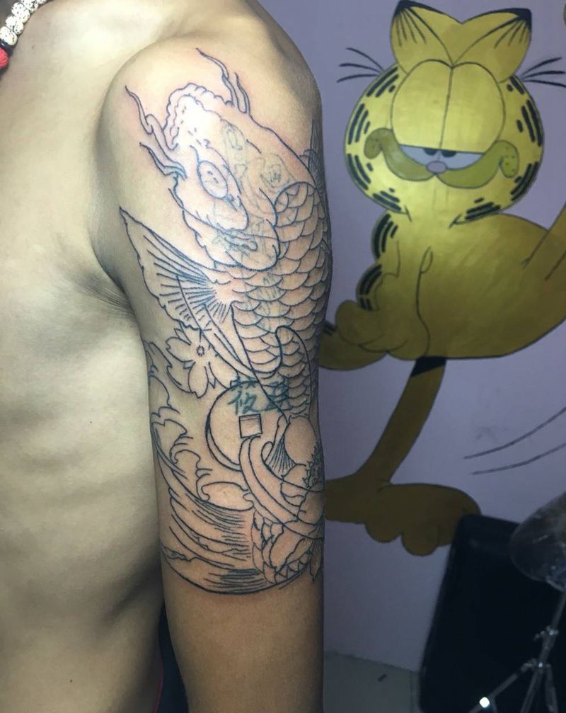 当前位置: 首页 >山东省滨州市纹身店-滨州惠民一铭纹身纹身图案>鲤鱼遮盖进行…文静徒弟作品纹身图片