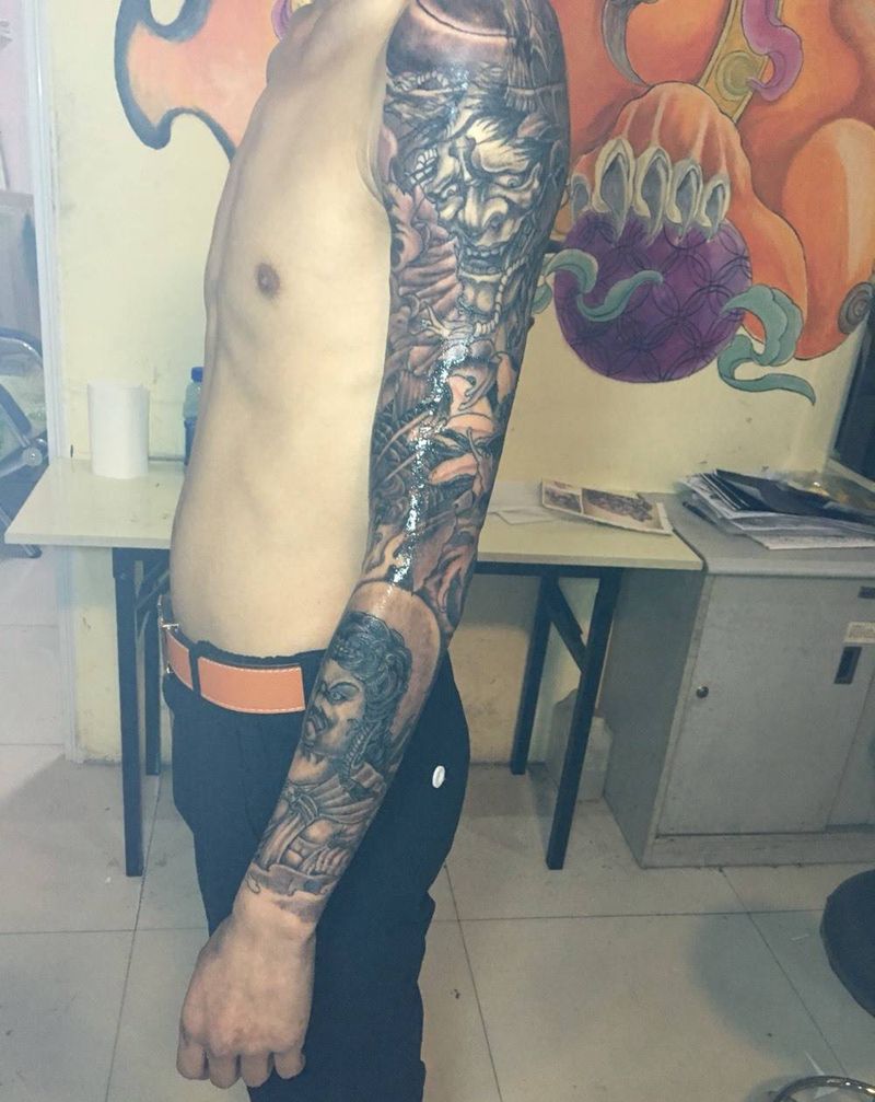 当前位置: 首页 >山东省滨州市纹身店-滨州惠民一铭纹身纹身图案>花臂原创纹身图片_原创传统手臂成品纹身图案