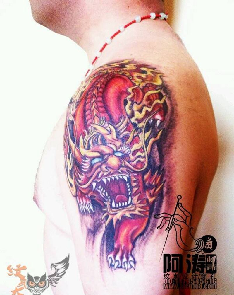 貔貅财富象征纹身图片_肩部传统动物纹身图案