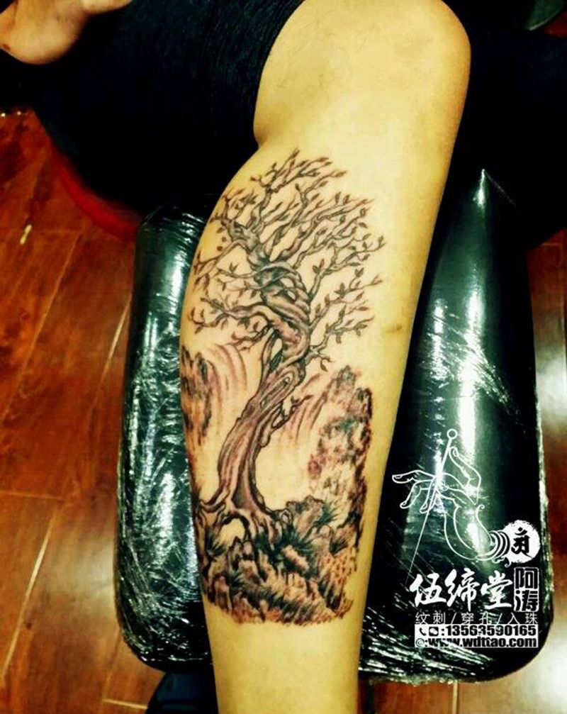 伍缔堂刺青 阿涛纹身图片_腿部植物原创纹身图案