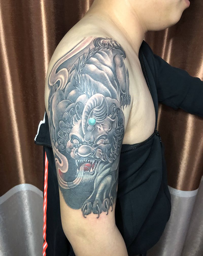 遮盖纹身图片_手臂新传统貔貅纹身图案