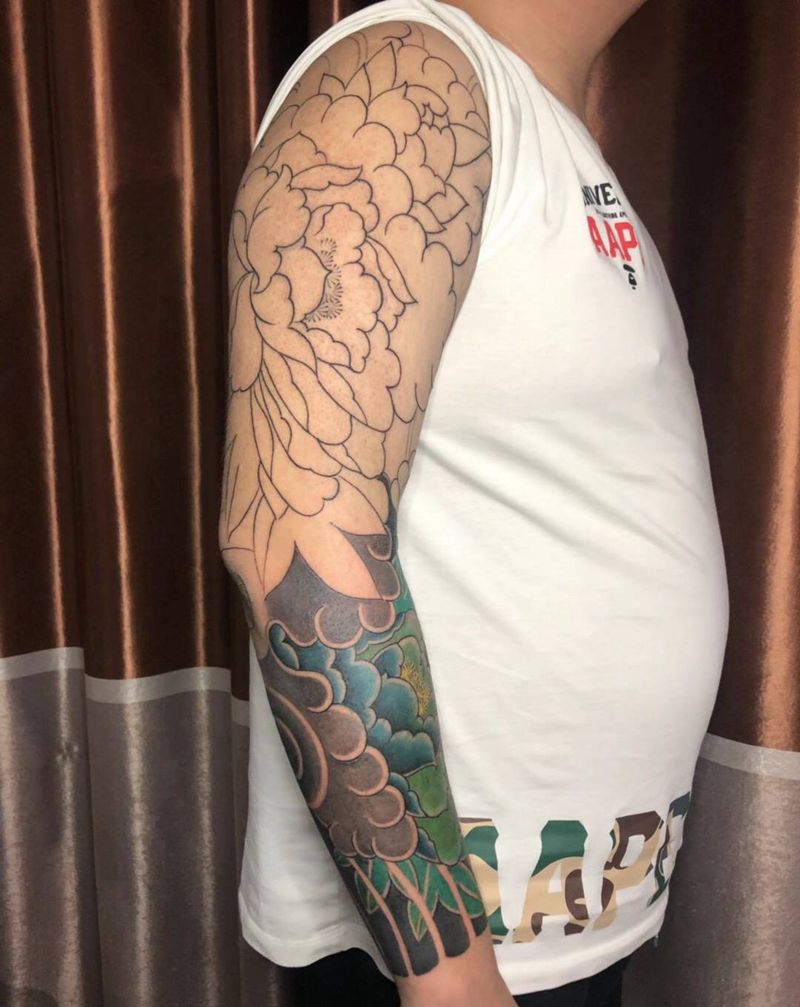当前位置: 首页 >山东省滨州市纹身店-磊刺青纹身图案>花臂 牡丹纹身图片_手臂老传统纹身图案