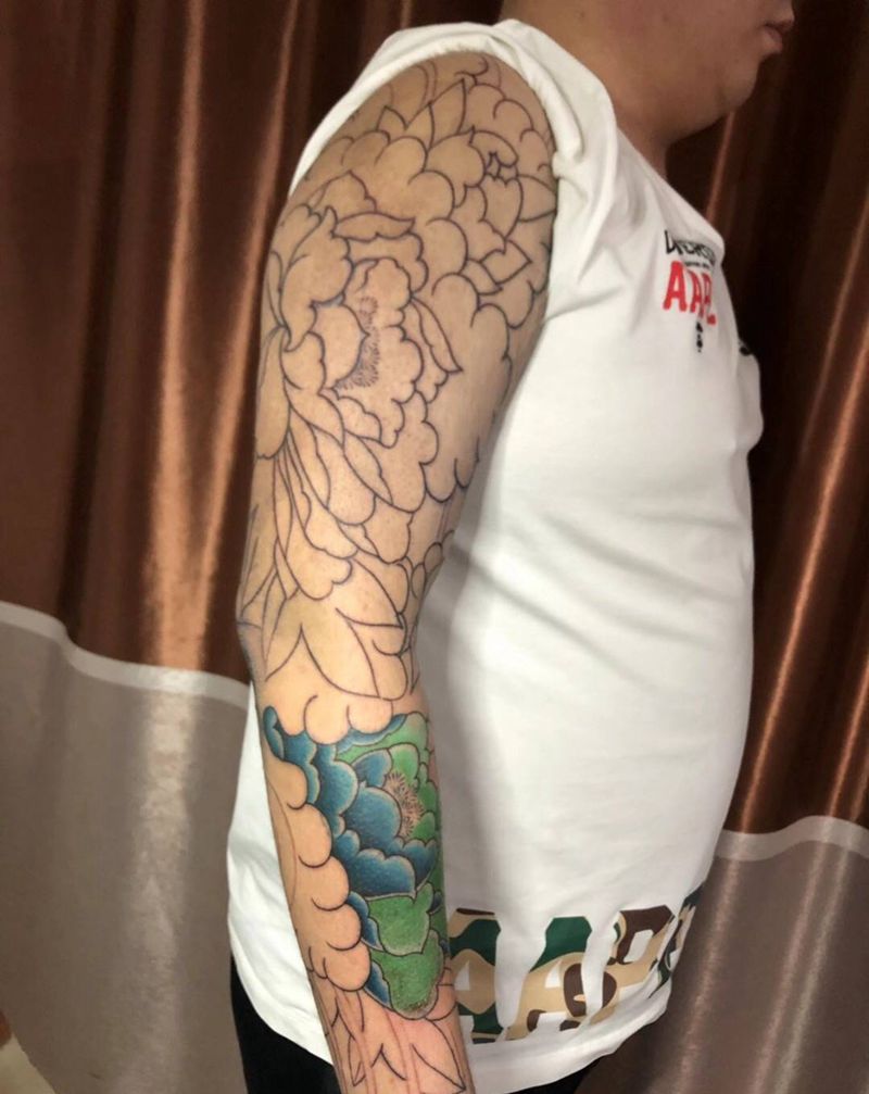 当前位置: 首页 >山东省滨州市纹身店-磊刺青纹身图案>花臂 牡丹纹身图片_手臂老传统纹身图案
