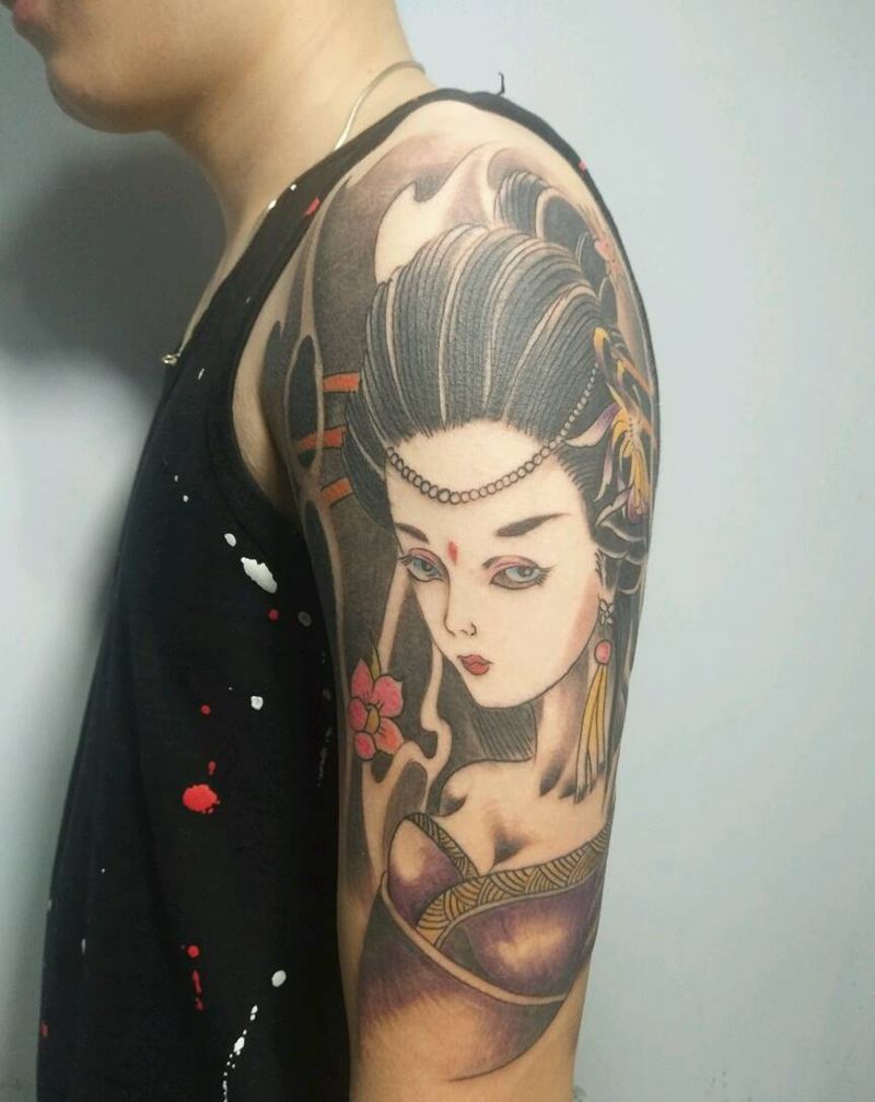 当前位置: 首页 >山东省滨州市纹身店-磊刺青纹身图案>大臂艺妓纹身图片