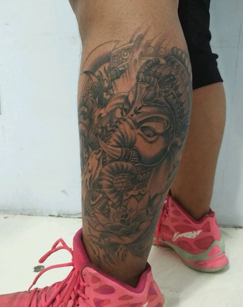 小腿 象神纹身图片