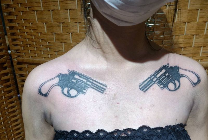 当前位置: 首页 >山东省滨州市纹身店-磊刺青纹身图案>锁骨双枪纹身图片