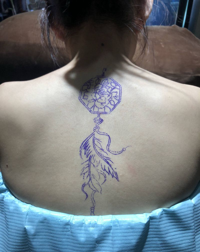 后背彩色小图纹身图片_颈部背部新传统纹身图案