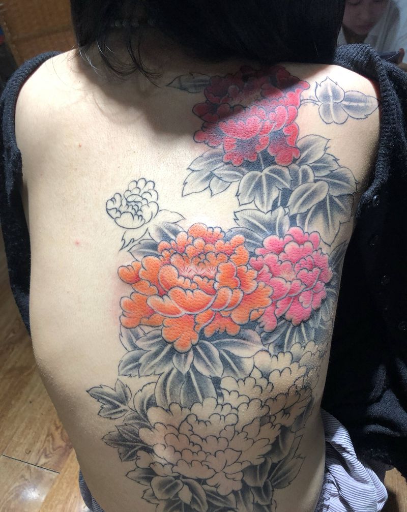 当前位置: 首页 >山东省滨州市纹身店-磊刺青纹身图案>半背 牡丹花纹身图片_背部新传统老传统牡丹花纹身图案