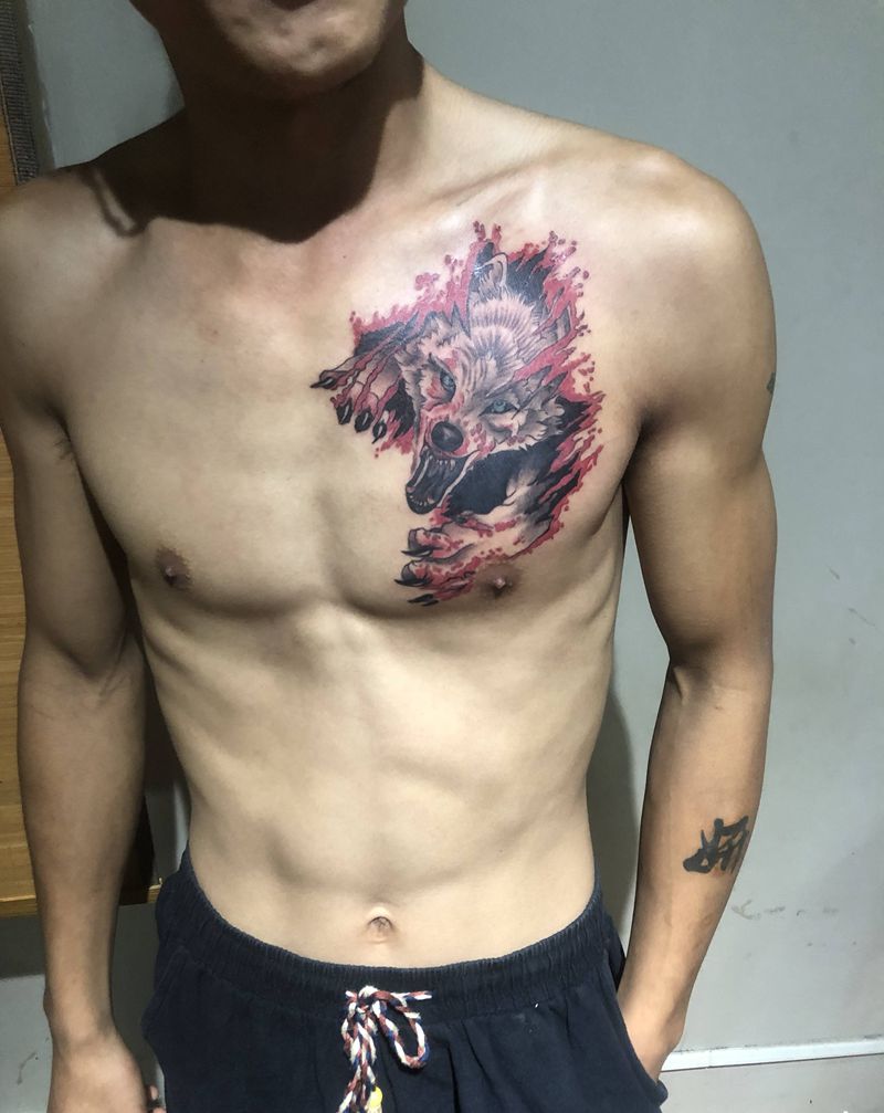 当前位置: 首页 >山东省滨州市纹身店-磊刺青纹身图案>狼头纹身图片_胸部新传统纹身图案