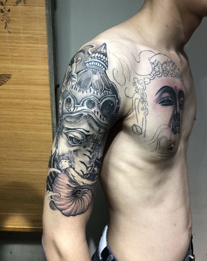 象神 佛纹身图片_肩部胸部新传统纹身图案