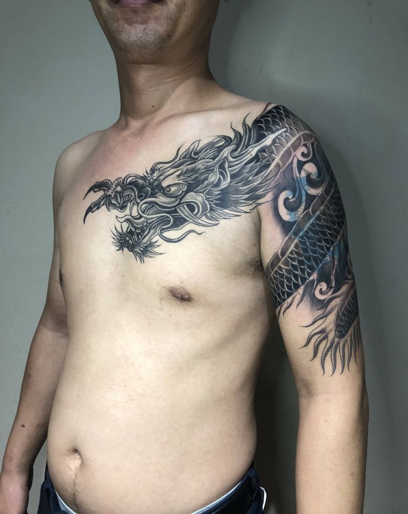 过肩龙纹身图片_肩部新传统纹身图案