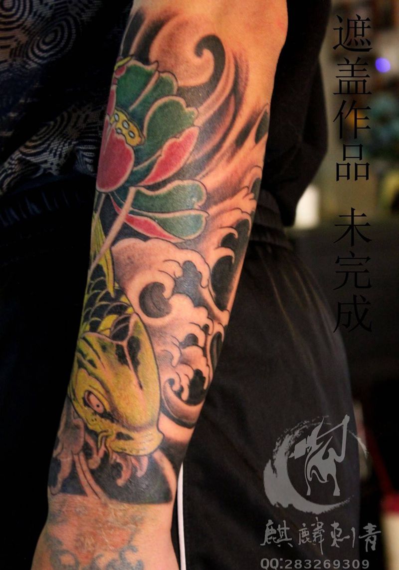当前位置: 首页 >山东省菏泽市纹身店-菏泽麒麟刺青纹身图案>小臂锦鲤遮盖纹身图片_成品手臂传统动物纹身图案