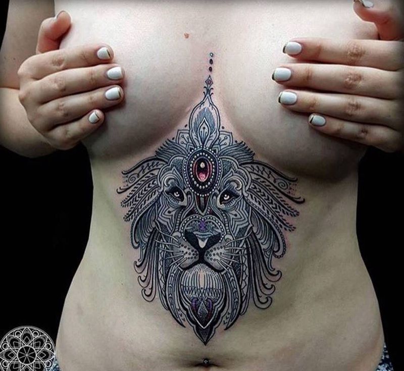 胸下纹身图案分享纹身图片_胸部成品欧美动物几何植物纹身图案