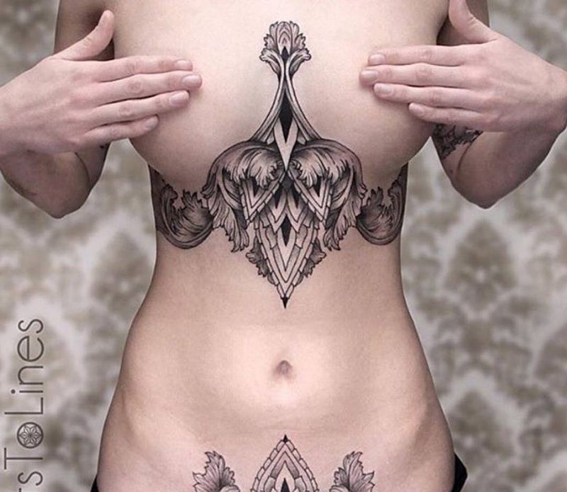 胸下纹身图案分享纹身图片_胸部成品欧美动物几何植物纹身图案