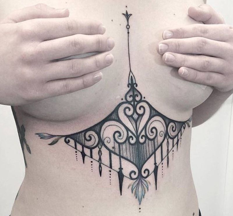 胸下纹身图案分享纹身图片_胸部成品欧美动物几何植物纹身图案