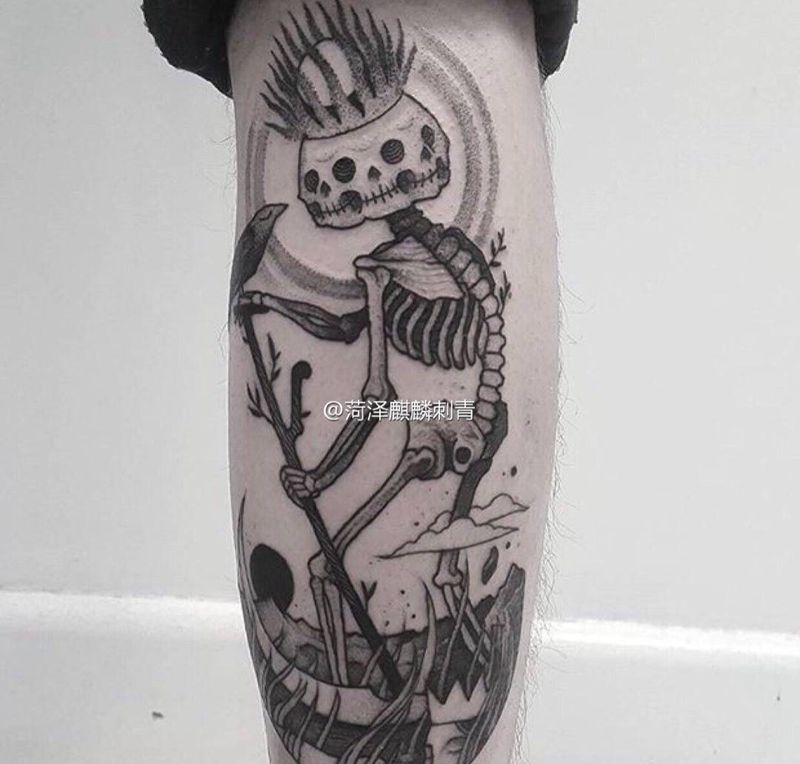 当前位置: 首页 >山东省菏泽市纹身店-菏泽麒麟刺青纹身图案>小腿纹身图案分享纹身图片_成品腿部清新传统写实几何人物纹身图案