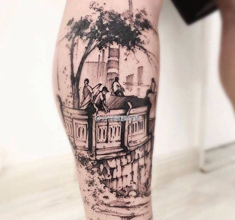 当前位置: 首页 >山东省菏泽市纹身店-菏泽麒麟刺青纹身图案>小腿纹身图案分享纹身图片_成品腿部清新传统写实几何人物纹身图案