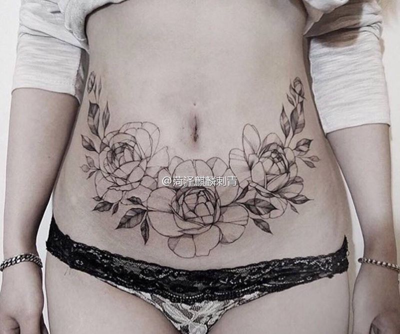 • T关于私处得爱!纹身图片_成品腹部清新字符图腾纹身图案