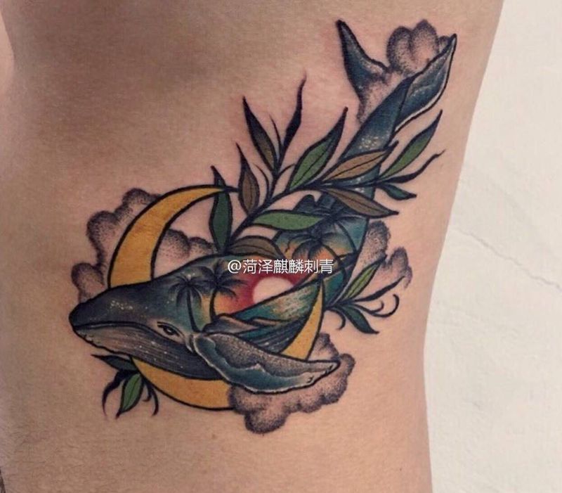 当前位置: 首页 >山东省菏泽市纹身店-菏泽麒麟刺青纹身图案>鲸纹身图片_成品背部手臂腰部清新欧美动物纹身图案