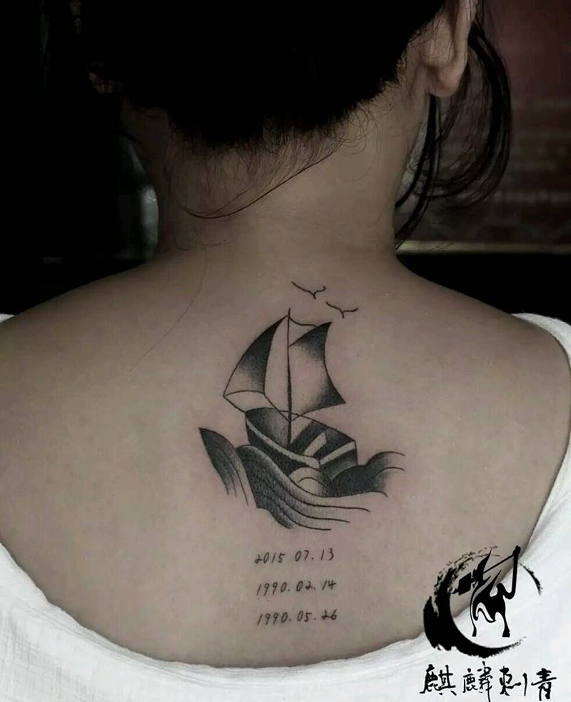 黑灰满背纹身图案